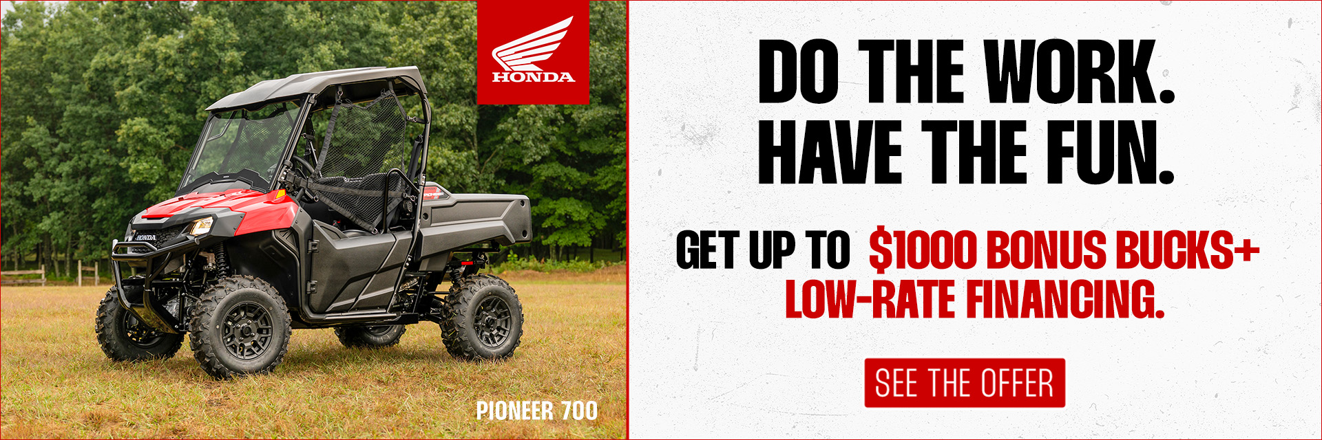 Up to $1,000 in Bonus Bucks on Select Models Only Special 3.99% APR on ALL MY Honda SXS Models (EXCL SXS700M2/M4) Disclaimers